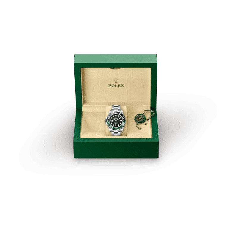 Como todos los relojes Profesionales de Rolex, el GMT‑Master II ofrece una gran legibilidad en cualquier circunstancia, especialmente en la oscuridad, gracias a su visualización Chromalight. Sus amplias agujas y sus índices de formas simples —triángulos, círculos, rectángulos— están recubiertos de un material luminiscente de larga duración.