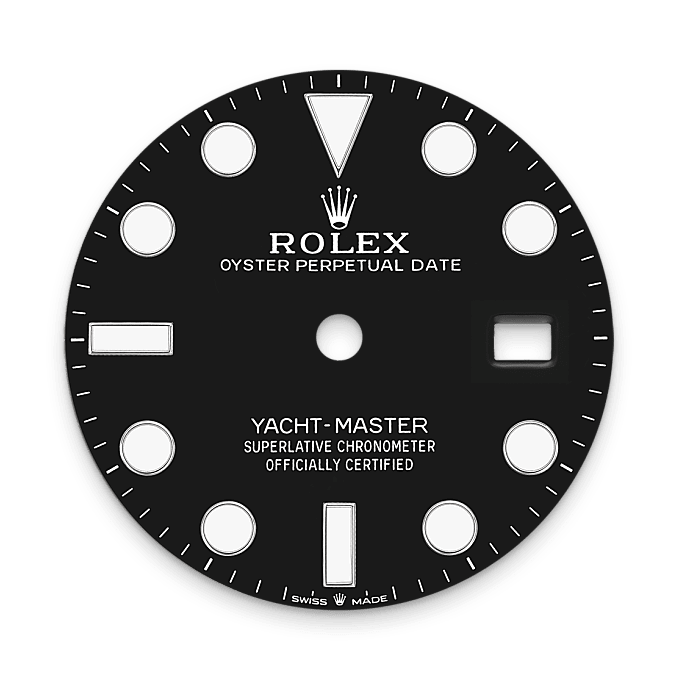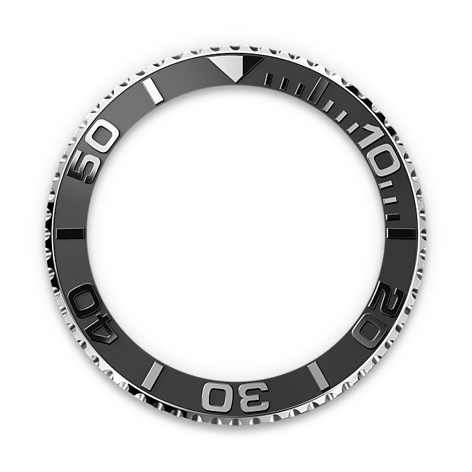 El bisel giratorio bidireccional graduado 60 minutos en relieve del Yacht‑Master está realizado íntegramente en metal precioso o dotado de un disco Cerachrom de cerámica de alta tecnología. Los números y graduaciones pulidos en relieve destacan claramente en el fondo mate pulido con chorro de arena. Este bisel funcional —que permite calcular, por ejemplo, el tiempo de navegación entre dos boyas— es además un componente clave de la distintiva identidad visual de este modelo.