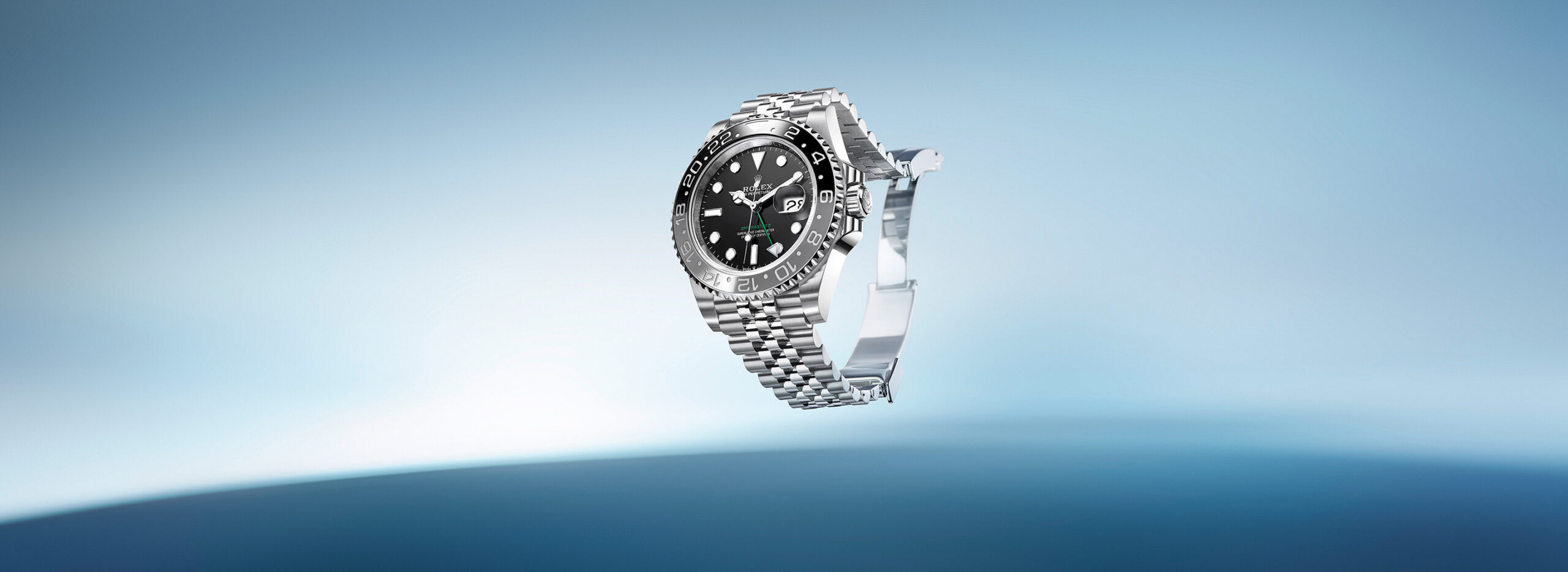 Diseñado en su origen como un instrumento de ayuda a la navegación pensado para los profesionales que recorren el mundo, el GMT-Master se ha convertido con el paso del tiempo en una referencia imprescindible entre los relojes para viajeros. Luce un diseño único e inmediatamente reconocible con su bisel giratorio bidireccional provisto de un disco graduado 24 horas. Este está disponible en versión bicolor —cuya mitad inferior simboliza las horas del día y la superior, las de la noche— con diferentes combinaciones cromáticas o en versión monocolor.