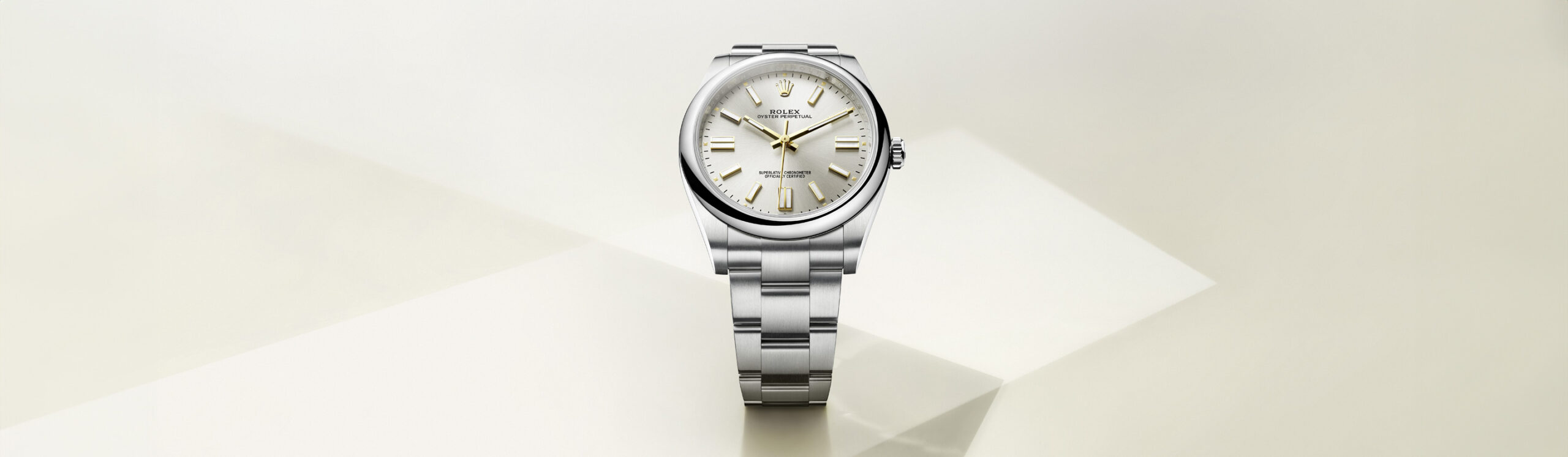 El Oyster Perpetual proporciona una fiable y precisa visualización de las horas, los minutos y los segundos. Las diferentes modalidades del reloj se distinguen por sus esferas de colores sutiles —plateado, azul vivo o negro vivo con acabado tipo sol— o vibrantes, como el rosa candy, el azul turquesa o el verde lacado. El Oyster Perpetual está disponible en cinco tamaños de caja: 28 mm, 31 mm, 34 mm, 36 mm o 41 mm. Ofrece la mayor elección de diámetros para una gama de relojes Rolex.